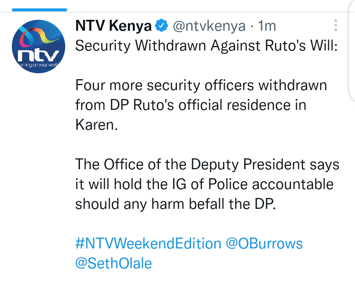 Home » Without Label » Dp Ruto Security Withdrawn : DP Ruto on State Security and Duale's List of Al Shabaab ... - According to mugonyi, the security officer in charge of security at the dp's residence in karen received verbal instructions from his superiors on thursday morning to withdraw all gsu officers from all ruto residences by 2pm.